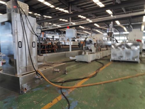 彈性體造粒代加工_彈性體造粒代加工_佳德JDL-65D雙螺桿水環(huán)造粒機組彈性體造粒代加工_彈性體造粒代加工_一、系統(tǒng)機組技術(shù)參數(shù)Ⅰ、機器顏色:主機為公司標(biāo)色;電柜為電腦色Ⅱ、造粒工藝:雙螺桿計量式喂料——-JDL-65D雙螺桿擠出機----——液壓板式換網(wǎng)——水環(huán)熱切模頭------水泵-----離心脫水機------2.5米加長振動篩-----風(fēng)冷成品料倉----- -主機采用:PLC控制Ⅲ、作業(yè)物料:TPE料 產(chǎn) 量:200-250公斤/小時(作業(yè)條件不同,產(chǎn)量稍有不同)彈性體造粒代加工_彈性體造粒代加工_客戶為何購買我們設(shè)備,我們價位在行業(yè)屬于中低價格,我們設(shè)備能給客戶帶來哪里利益,我們設(shè)備能給用戶帶來以下利益:1.特點:這套設(shè)備主機是環(huán)保型;主機設(shè)備不需要接外循環(huán)水系統(tǒng);自帶循環(huán)冷卻統(tǒng)是我公司專利產(chǎn)品,2.雙螺桿齒輪箱冷卻采用:采用環(huán)保冷卻系統(tǒng)(環(huán)保型:發(fā)明專利號:CN201911312134.6)不需要接外循環(huán)水冷卻,不用徘外水;采用閉環(huán)循環(huán)系統(tǒng),不用擔(dān)心長時間使用水冷卻會產(chǎn)生水垢把冷卻器堵住,導(dǎo)致齒輪箱損壞3.雙螺桿主機水箱冷卻系統(tǒng)采用:采用環(huán)保冷卻系統(tǒng)(環(huán)保型:發(fā)明專利號:CN201911312134.6)不需要接外循環(huán)水冷卻,不用徘外水;采用閉環(huán)循環(huán)系統(tǒng)4.水循環(huán)真空泵,電機功率:2.2KW,真空泵采用環(huán)保冷卻系統(tǒng)(環(huán)保型:發(fā)明專利號:CN201911312115.3)不需要接外循環(huán)水冷卻,采用閉環(huán)循環(huán)系統(tǒng)5.節(jié)能:普通筒體筒體冷卻;例如:第5區(qū)溫度超高;這是電子閥導(dǎo)通;第5區(qū)冷卻回水就會影響第六區(qū)和第四區(qū)的溫度下降;就會導(dǎo)致第四六區(qū)加溫;這種情況會一直循環(huán)出現(xiàn);導(dǎo)致電費浪費;我們現(xiàn)在采用環(huán)保型就徹底解決這個問題;加我們委托第三方開發(fā)溫控模塊,溫控加熱系統(tǒng)比同類設(shè)備節(jié)能:10-20%電費,就是每噸能為客戶節(jié)省電費10元,每年大概能節(jié)約電費3萬6.雙螺桿齒輪箱采用高扭:D型齒輪箱